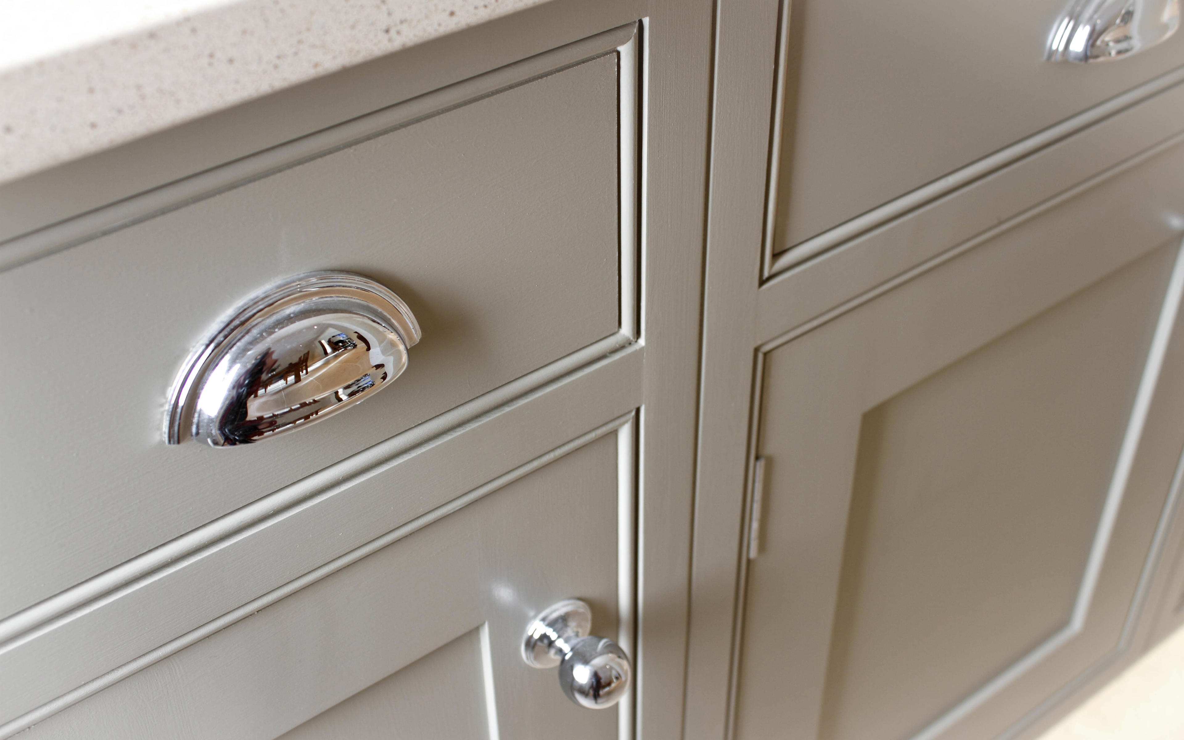 Stimmen Sie Ihre Möbelgriffe auf Ihre Küchenarmaturen ab. Unser Schubladengriff Rounded steht für einfaches, aber elegantes Design, das sich sowohl für traditionelle als auch für moderne Schränke eignet. Auch in einer größeren Größe erhältlich.