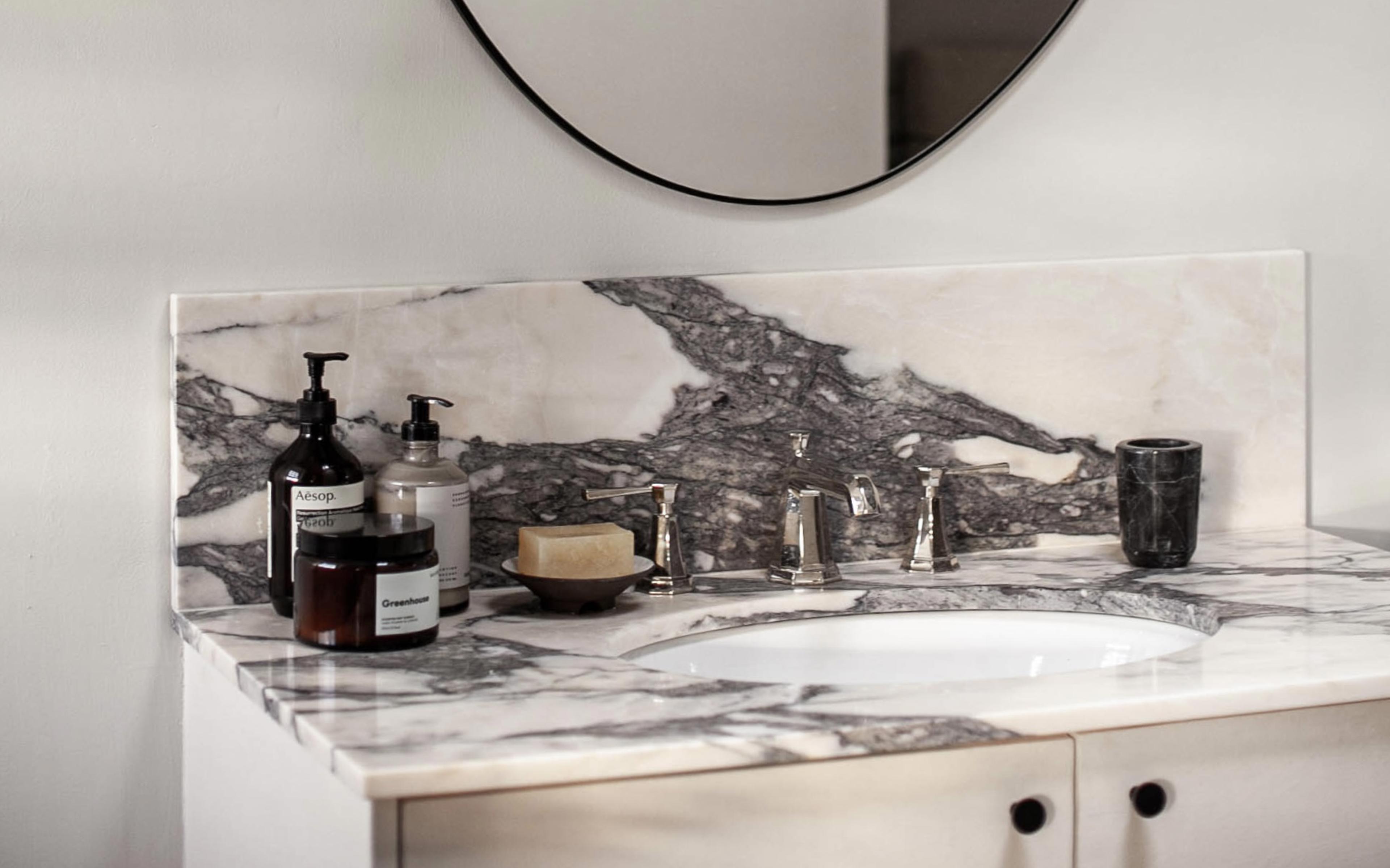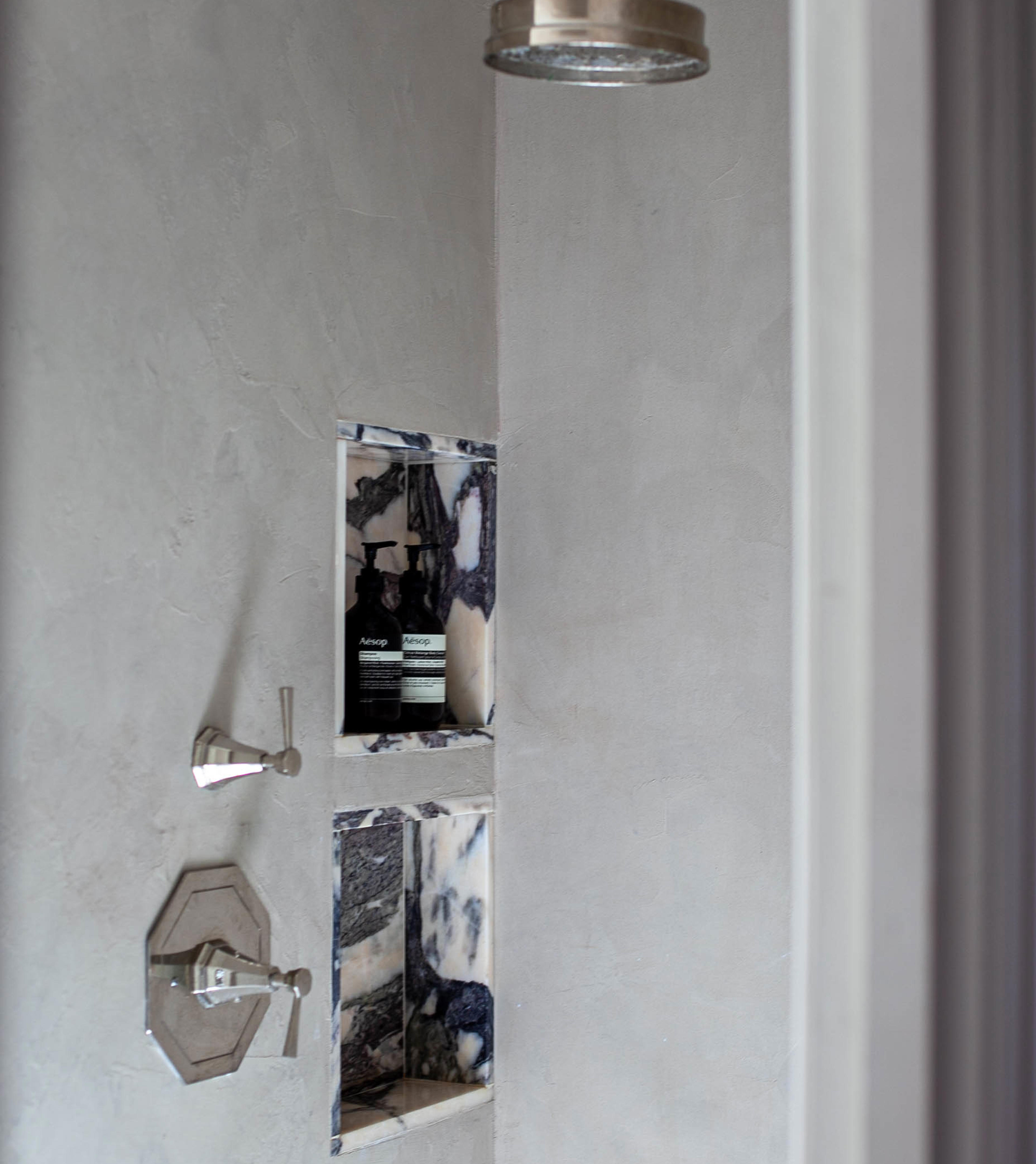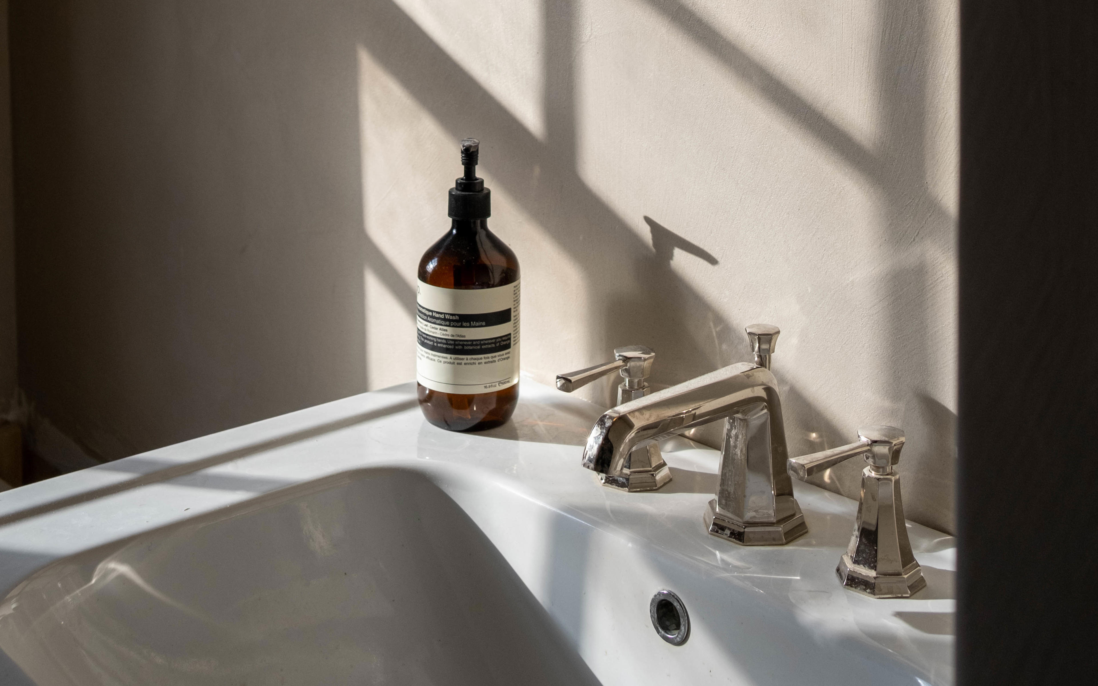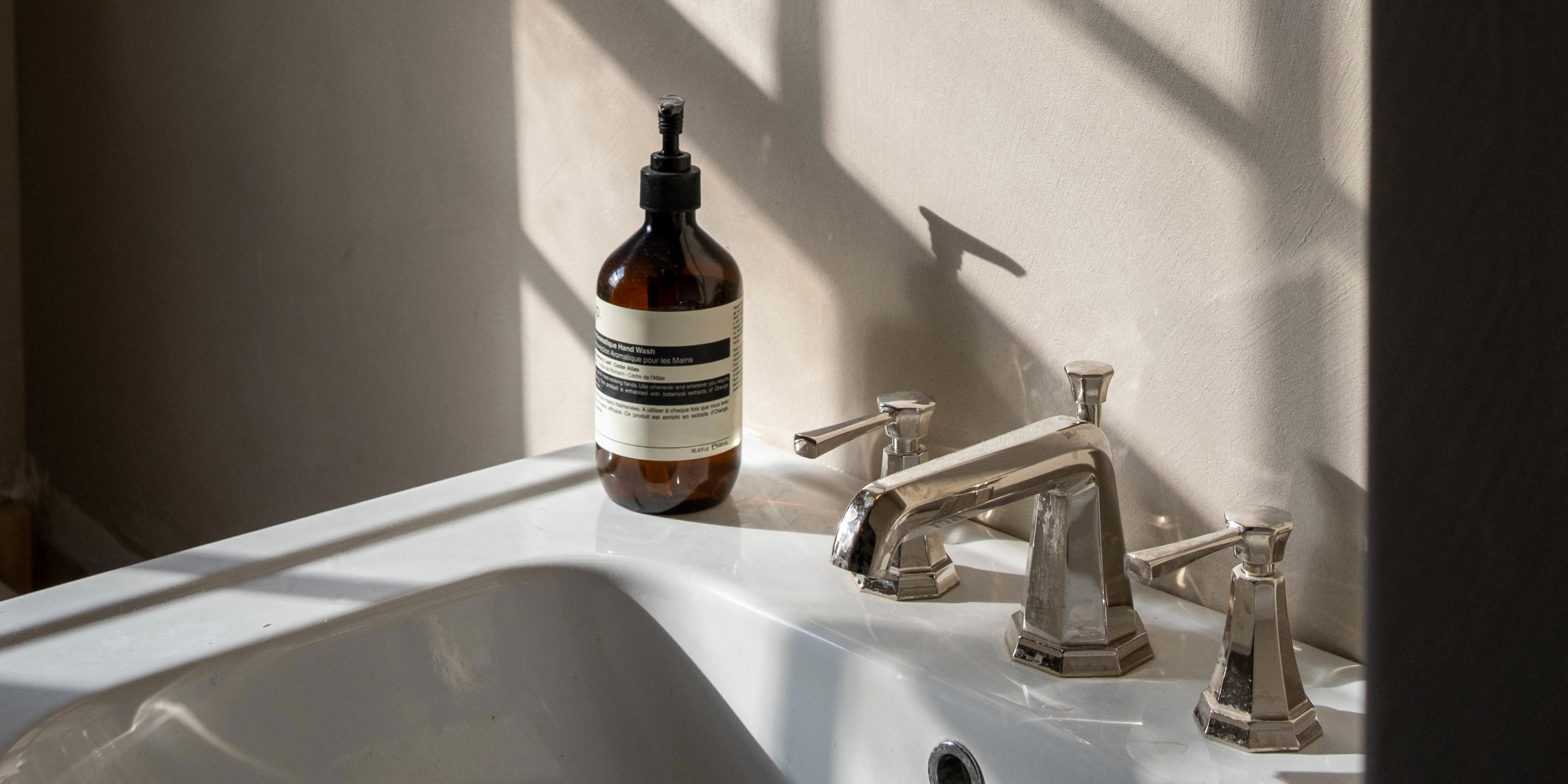 Journalist and podcast host Anna Barnett opted for basin taps, a deck-mounted bath mixer and a concealed shower set from the Perrin & Rowe Deco collection for the bathrooms in her East London period home.