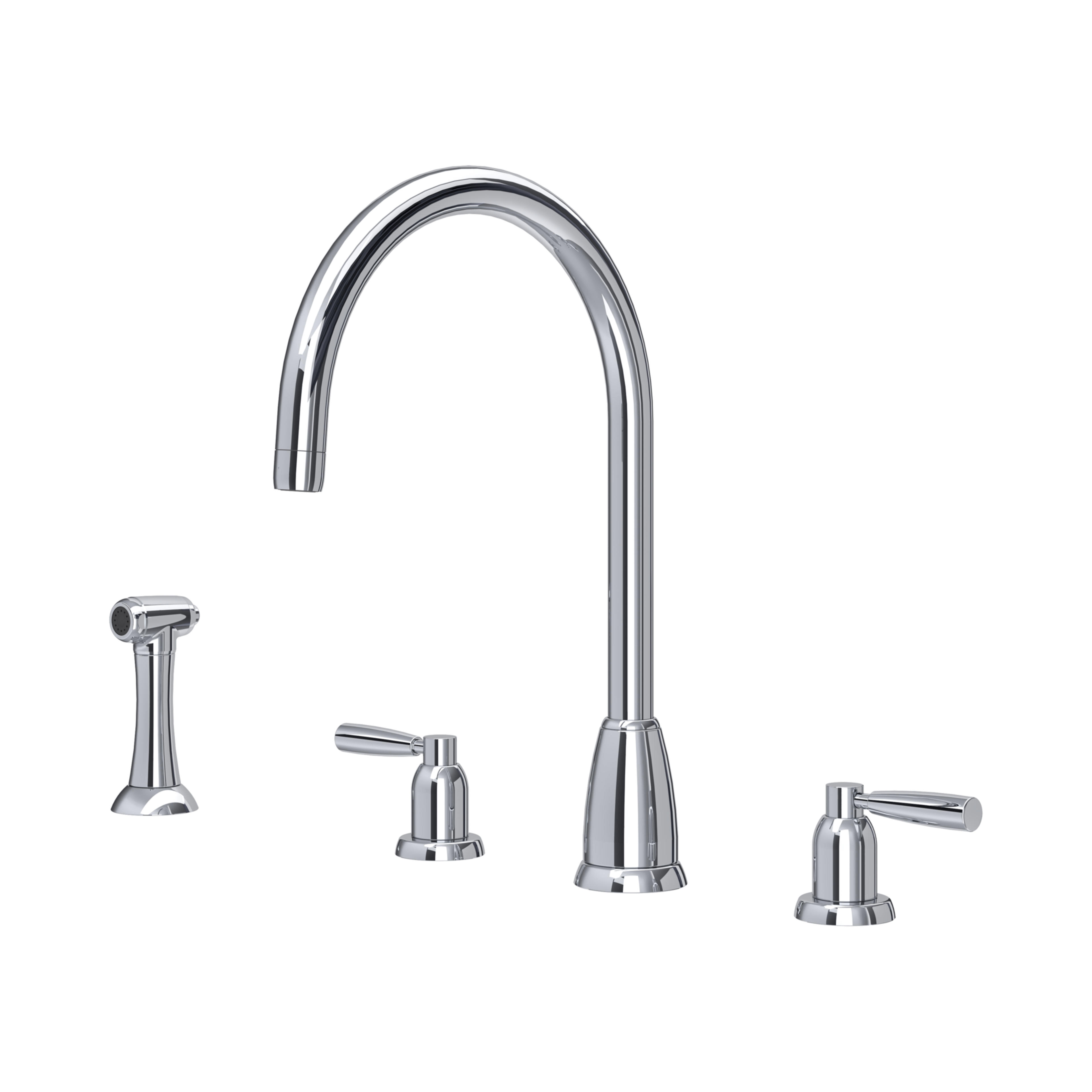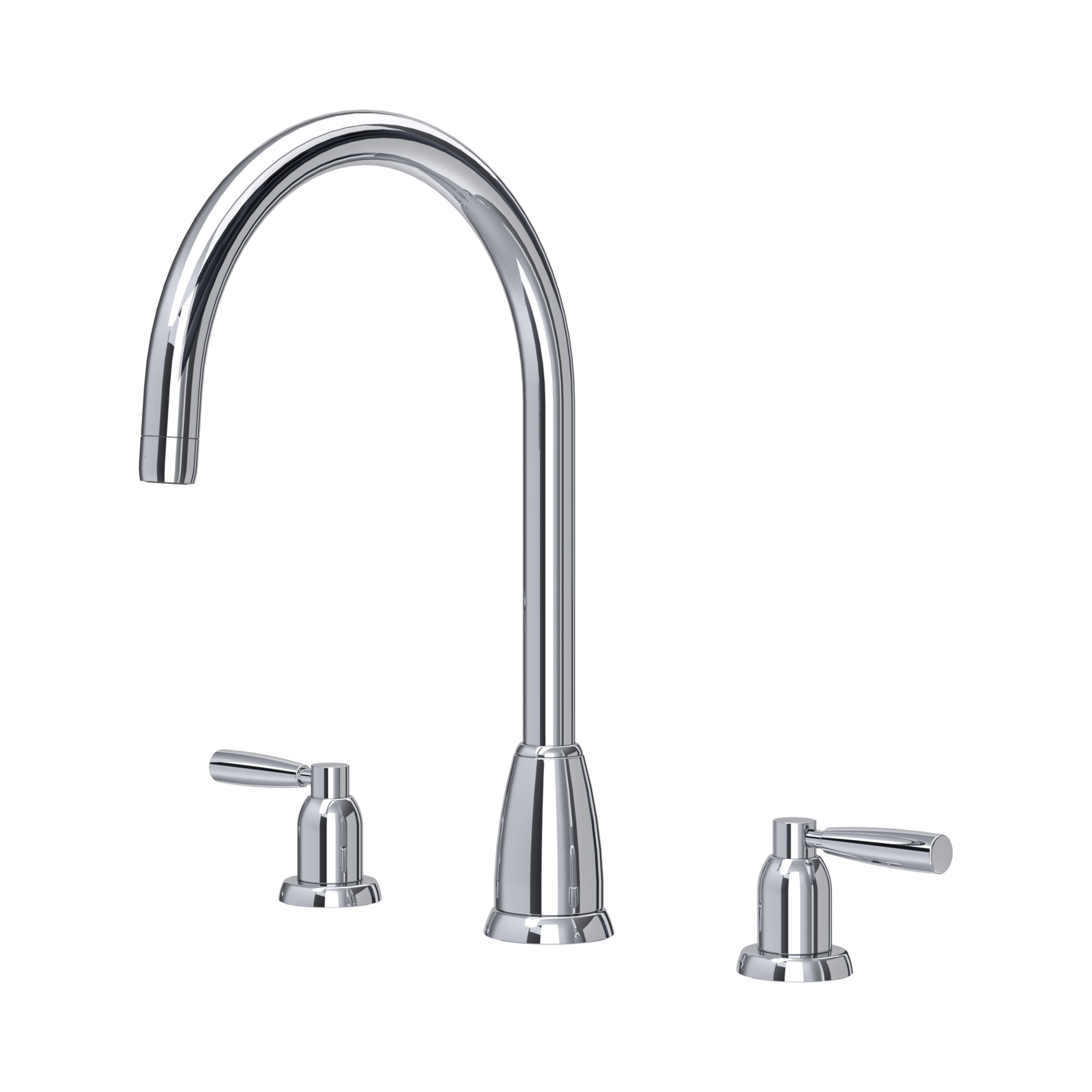 The Langbourn widespread mixer is classically beautiful, making it a tap which complements a variety of kitchen styles from modern to traditional. It looks particularly striking in nickel, or one of our living brass finishes. This version features a curved C-shaped spout and lever handles.