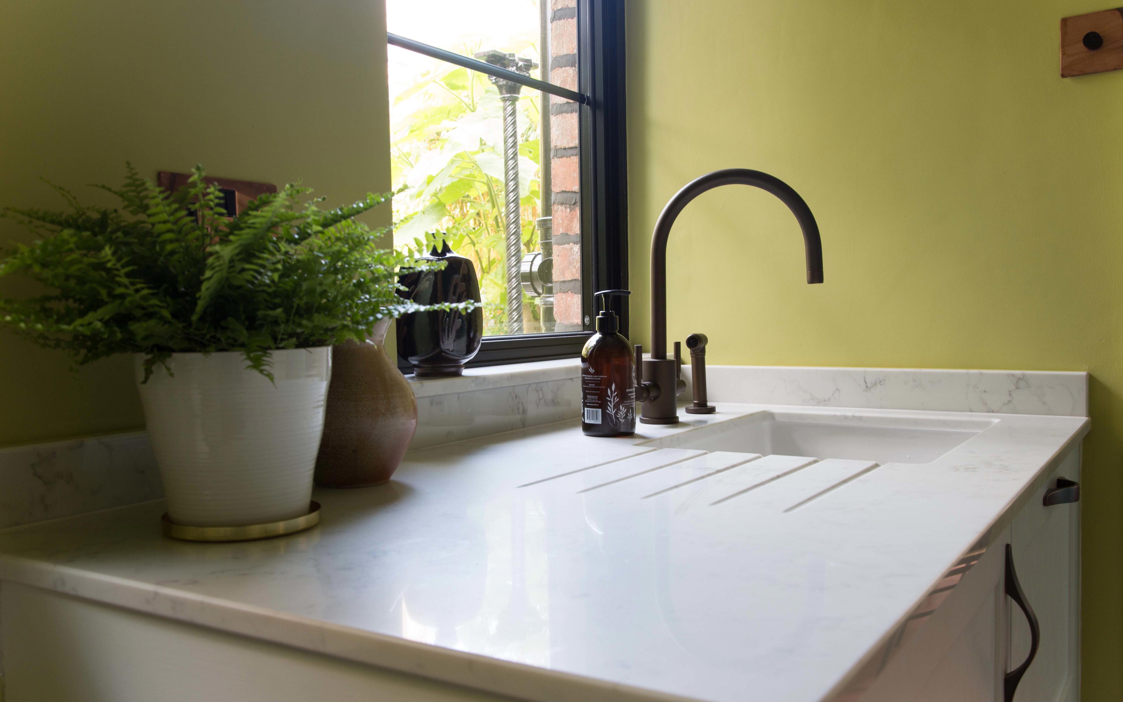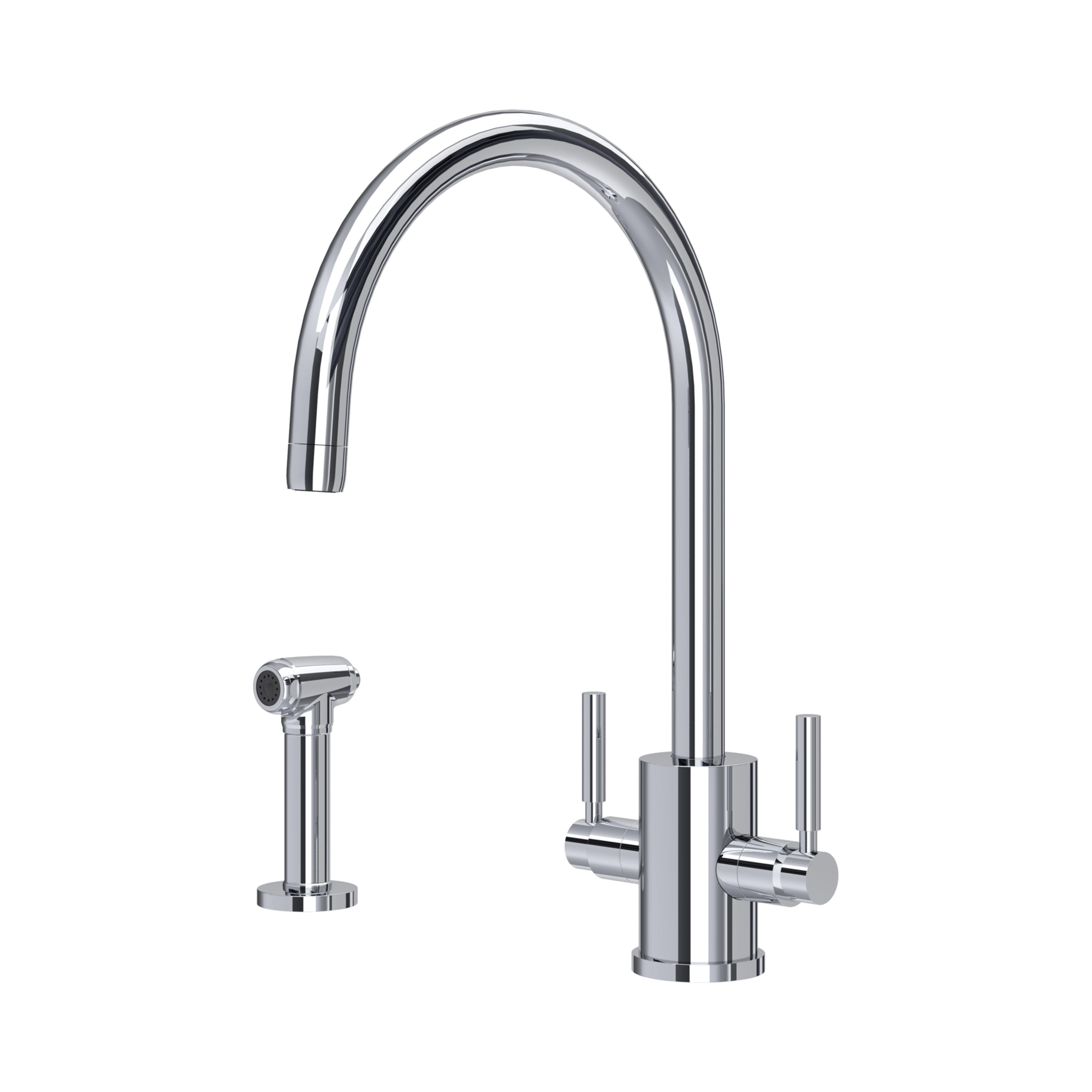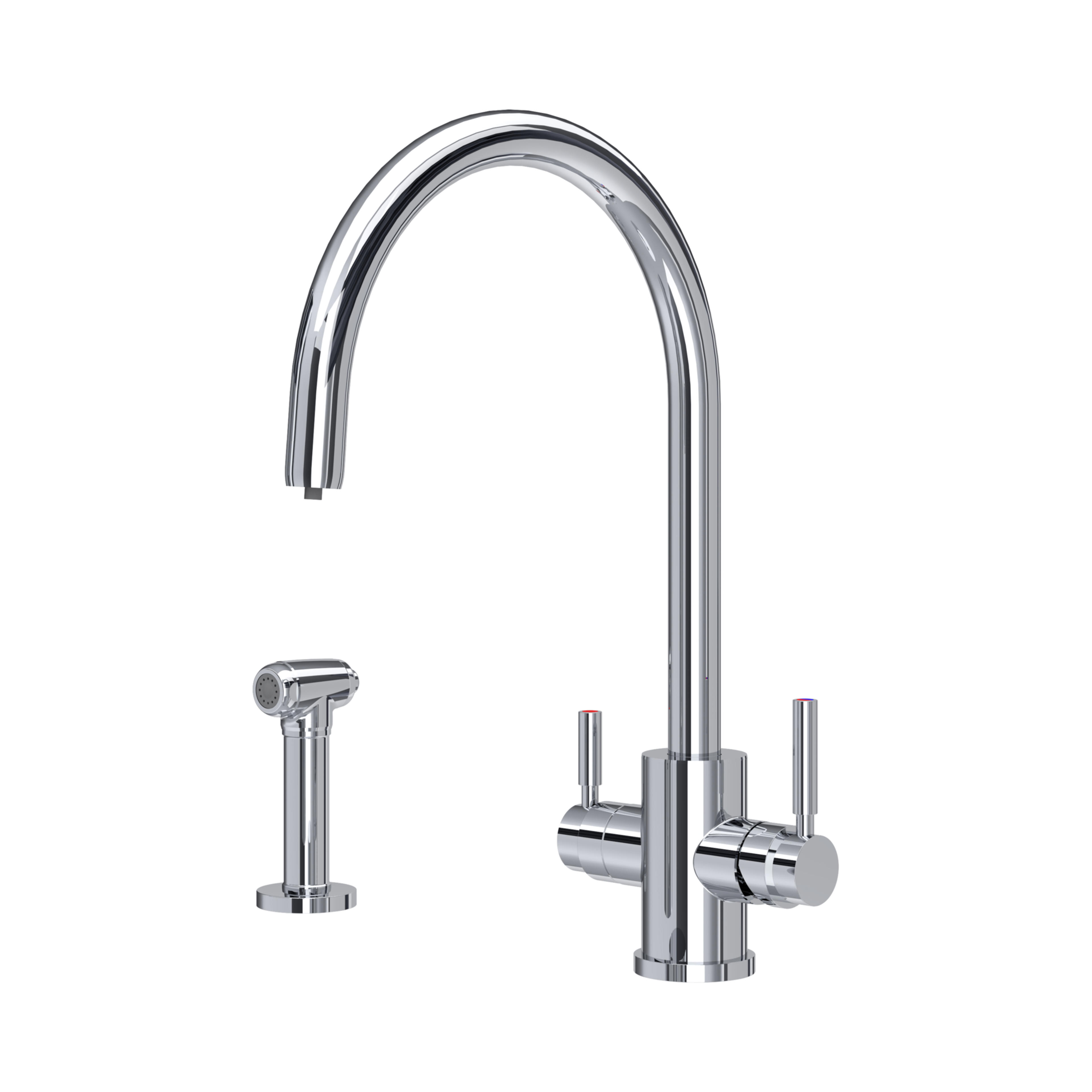 Featuring an elegant, curved spout and softly sculptured base, this variation of the Juliet Round sink mixer also features a handy side spray rinse for helping with cooking, cleaning and filling large pots and pans.