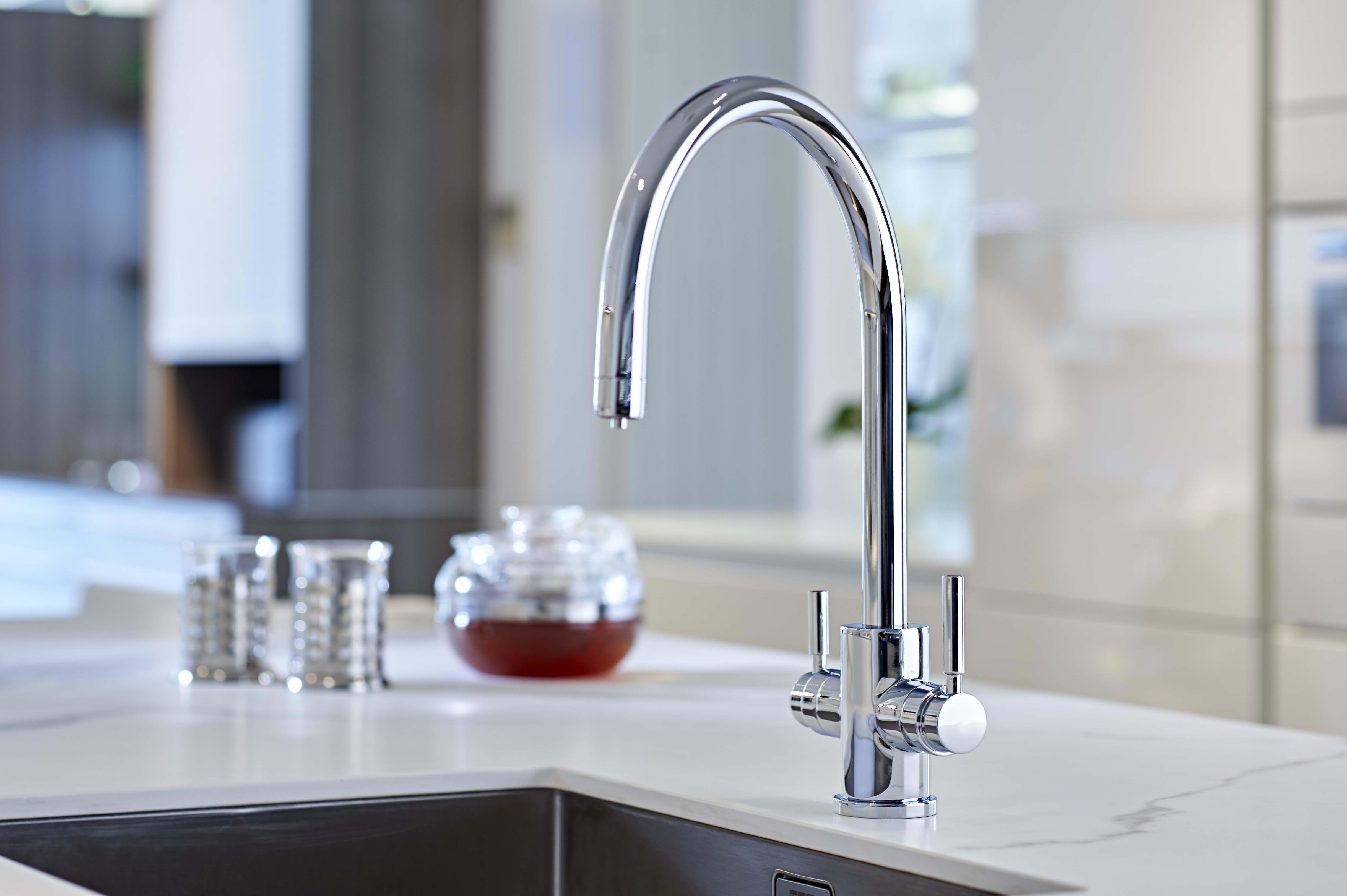 Ogni cucina moderna ha bisogno della comodità di un rubinetto per l'acqua calda istantanea. Il nostro sistema di riscaldamento istantaneo 3-in-1 Juliet è un rubinetto elegante e moderno che eroga acqua calda, fredda e quasi bollente con la semplice pressione e rotazione di una leva.